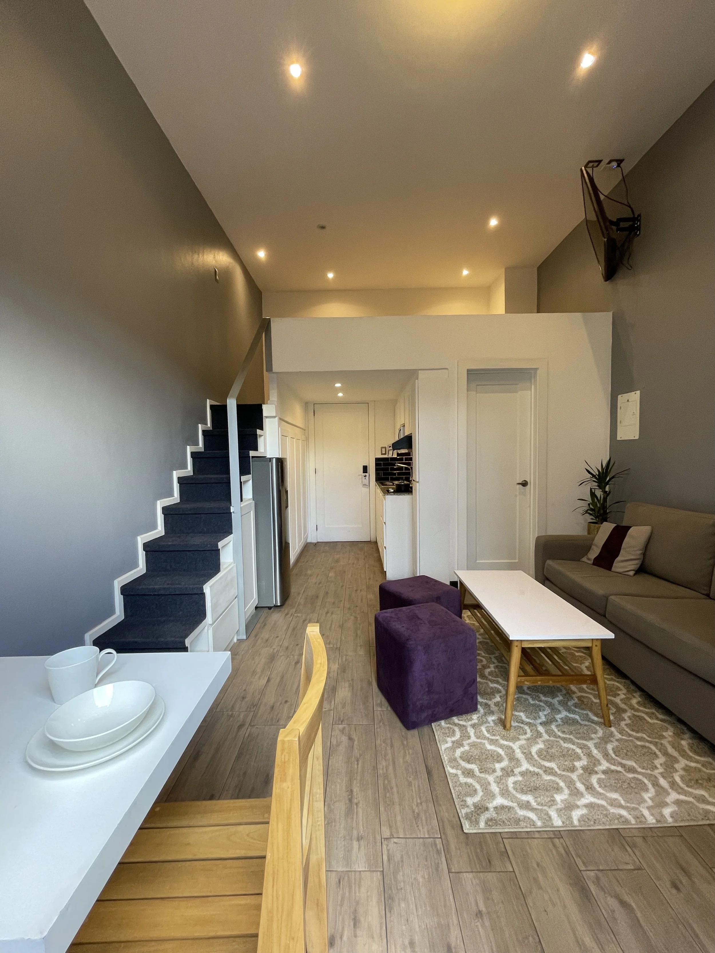 Es un edificio de lofts pequeños pero perfecto para vivir cómodo como en un hotel, nos esforzamos en hacer un edificio con apartamentos funcionales y perfectos para personas independientes o parejas.